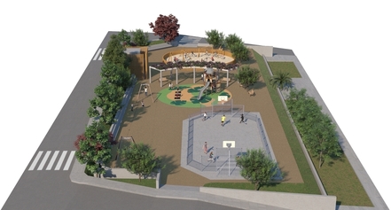 Un nou sorral al costat del carrer Ametllers amb un gronxador accessible, un circuit d’obstacles de fusta i un balancí amb moviment rotatori.